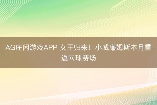 多位记者披露,AG庄闲游戏APP小威廉姆斯将在本月底前重返网球赛场,她将完成一项为期六个月的网球测试。如果如期回归,这位传奇选手将以44岁的年龄征战WTA巡回赛。